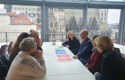 Beim Teamtag in Wien nutzten die Mitarbeiterinnen des Familienreferates samt Zivildiener die Gelegenheit zu einem Besuch in der Familienstelle der Erzdiözese Wien.