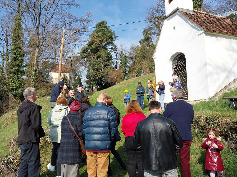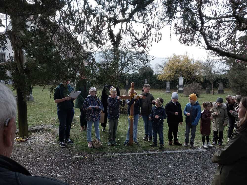 Gemeinsam mit ihren Familien machten sie sich auf den Weg und gestalteten die einzelnen Stationen aktiv mit. Dabei wurde gezeigt, wie sich die Erfahrungen aus dem letzten Weg Jesu auch in unserem eigenen Leben widerspiegeln. Die jungen Teilnehmerinnen und Teilnehmer