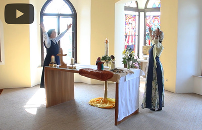 Tanz zu „Halleluja! Seht, was Gott getan“ Barbara Koren und Sr. Maria Leopold tanzen zum Lied „Halleluja! Seht, was Gott getan“ in der Schlosskapelle Dobl. In ihrer Mitte befindet sich die Osterkerze, als Symbol der Auferstehung. mehr: Tanz zu „Halleluja! Seht, was Gott getan“
