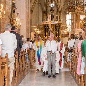 Vergangenen Sonntag, 29. Juni, konnte Pfarrer und Seelsorgeraumleiter Ronald Ruthofer seine Begrüßungsworte an eine volle Semriacher Kirche richten. Aus den sieben Pfarren des Seelsorgeraums waren zahlreich Menschen gekommen, um miteinander Messe zu feiern. Pfarrer Martin Trummler aus Voitsberg verlas im Auftrag ein Grußwort von Bischof Wilhelm Krautwaschl und leitete die Feier, Regionalkoordinator Martin Rapp erläuterte in einer kurzen programmatischen Ansprache, wie ein Seelsorgeraum funktionieren kann.