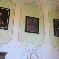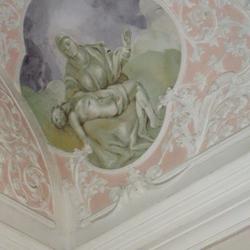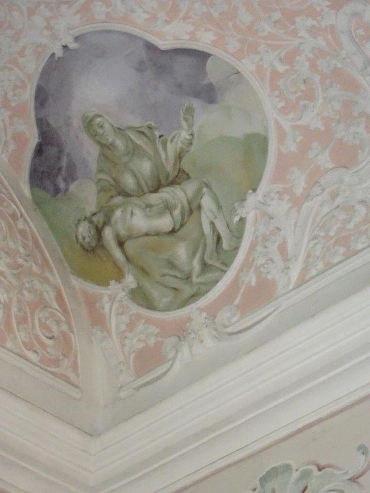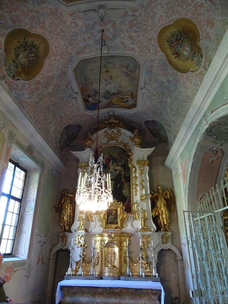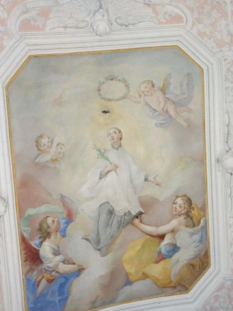 Der Kapellenraum besteht aus einem Tonnengewölbe mit zartem, besonders reich ausgebildetem Rokokostuck, der den italienischen Einfluss verrät. Die beiden Bildfelder sind mit Szenen aus dem Leben des Heiligen ausgestattet und stammen ebenfalls vom Künstler J.A. Mölk. In den vier Ecken befinden sich Bildfelder in Grau-Weiß-Schwarz-Maltechnik mit der Darstellung der drei göttlichen Tugenden (Glaube, Liebe, Hoffnung) sowie einer Pieta.