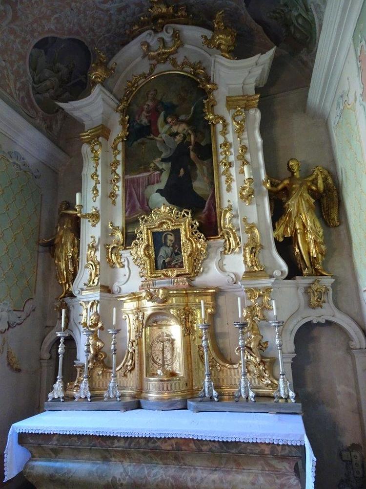 Der Altar ist ein typischer, reich geschwungener und in Weiß und Gold gefasster Rokoko-Altar mit dem Altarbild des „Hl. Aloisius“ vom berühmten Kirchenmaler und Universalgenie Joseph Adam Mölk. Auf dem Tabernakel steht ein reich gerahmtes Ölbild des Heiligen, ein Gnadenbild spanischer Herkunft, bei dem sich damals Wunderbares zugetragen hatte. Der Jesuit Aloysius Gonzaga wurde 1726 heiliggesprochen.