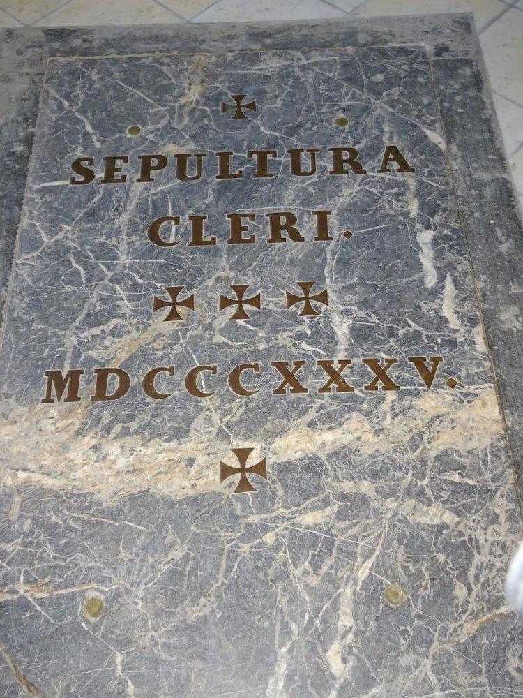 An der Rückwand ist ein Renaissance-Grabmal für Kaspar von Radmannsdorf (gestorben 1584) in weißem Marmorrelief mit Halbfigur in voller Rüstung sichtbar. An der Nordwand befindet sich eine stark verwitterte Marmorgrabplatte für den 1480 verstorbenen Barthlme Lichnider und dessen Gattin. Auf dem Fußboden weist eine große Steinplatte auf die von den Redemptoristen darunter angelegte Priestergruft hin.