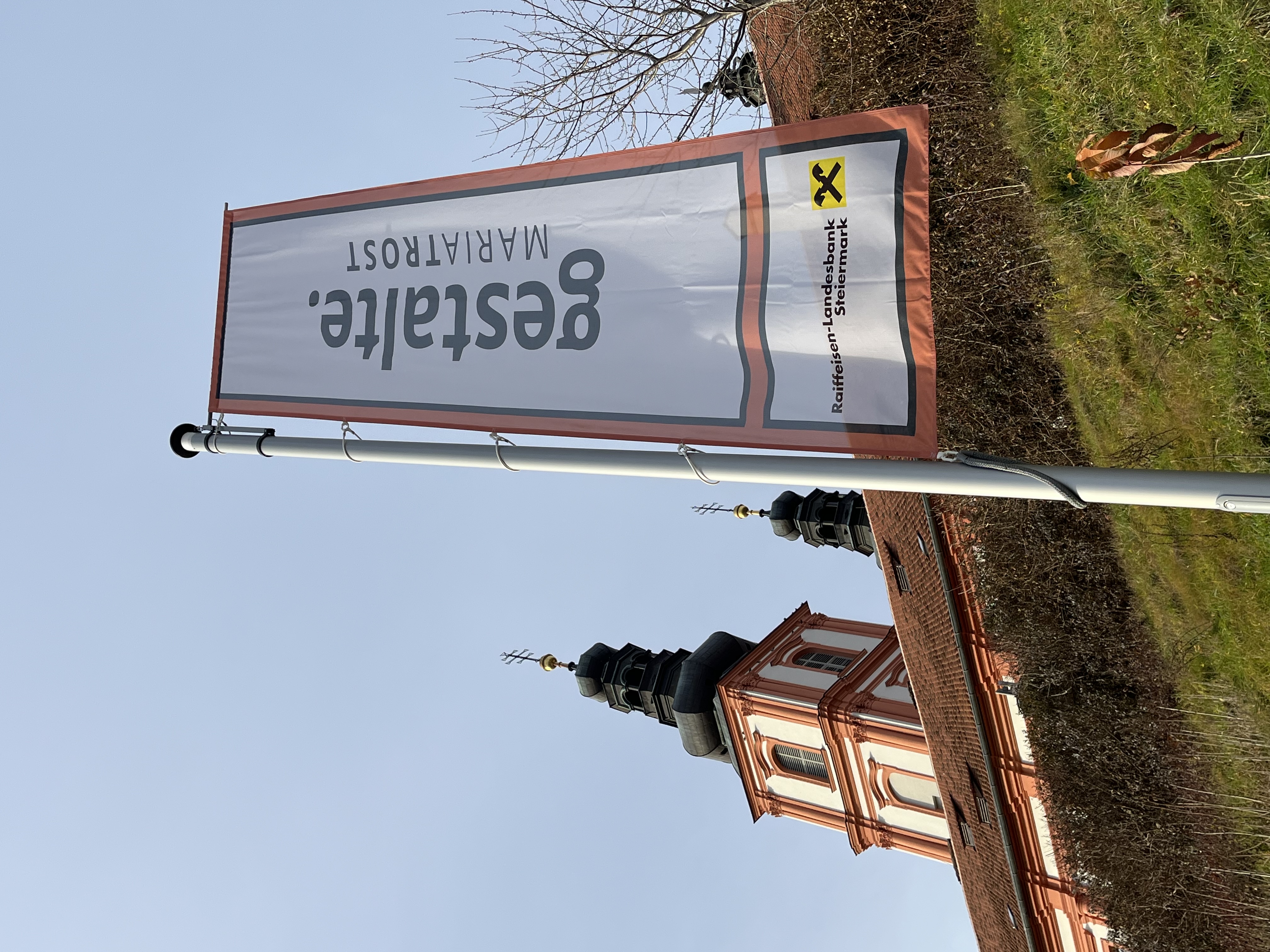 15 Unternehmen und Institutionen helfen – optisch fein sichtbar gemacht durch 18 Fahnen – mit, auf die Tiefenwirkungen von MARIATROST aufmerksam zu machen: 4 THEMEN-Fahnen stimmen die Besuchenden auf das Kirchenjahr ein und 14 SPONSORING-Fahnen signalisieren die verlässliche Projektbegleitung durch die Sponsoren.