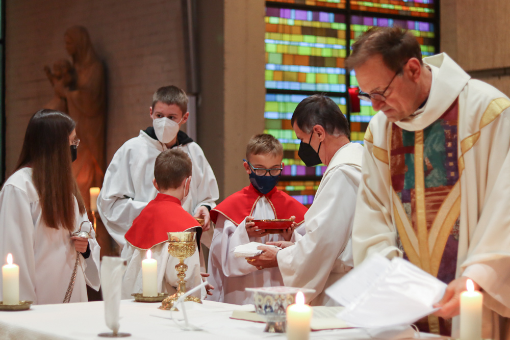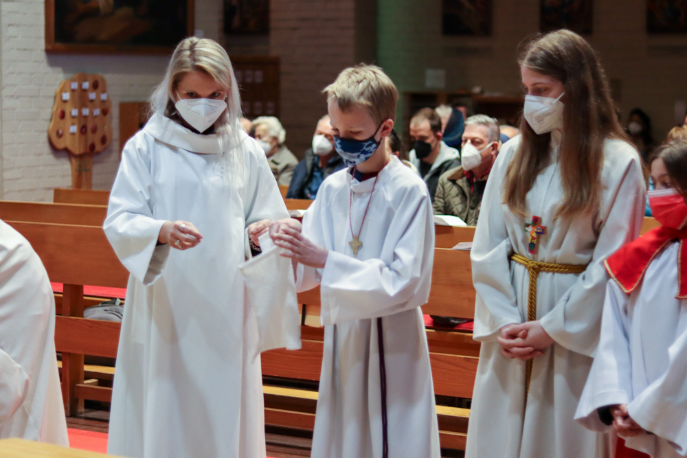In einer etwas anders gestalteten Fußwaschung wurde jenen gedacht, die nicht oder nicht mehr am Leben der Kirche teilnehmen können oder möchten. Die Stühle blieben leer. Symbolisch für Rand- und Zielgruppen und jene Menschen, die unsere Gesellschaft mitprägen, wurden Kerzen entzündet. Als Zelebranten fungierten unsere drei Priester, drei Diakone sowie alle Pastoralreferentinnen und Referenten, welche den Sendungsauftrag im Seelsorgeraum Kaiserwald erfüllen.