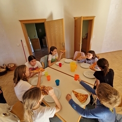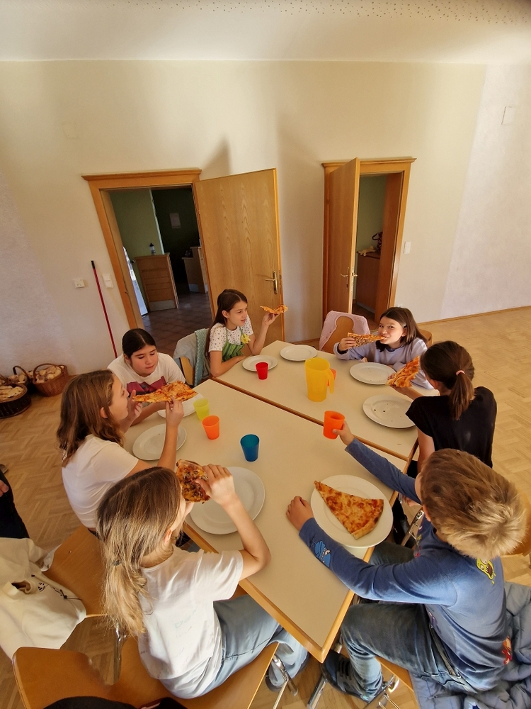 Als Belohnung gab es dann für alle Pizza und Pommes zum Mittagessen.