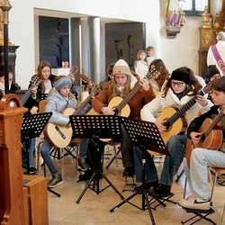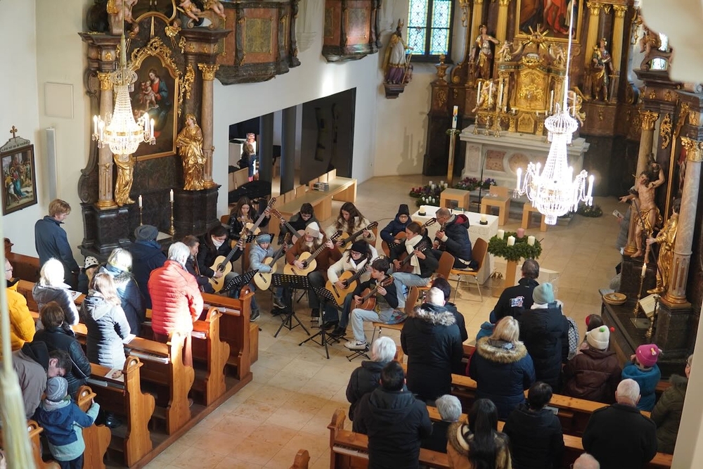 Mit viel Gefühl stimmten die jungen Musikerinnen und Musiker mit ihren Gitarren in die Adventzeit ein und bereicherten mit ihren Stücken die heilige Messe, die Vikar Norbert Glaser, unterstützt von Diakon Michi Zepf, zelebrierte.