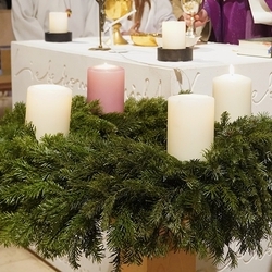 Die Vorfreude steht im Mittelpunkt des Gaudete-Sonntags! Daher erstrahlt als dritte Kerze die rosafarbene, die den hellen Charakter dieses Sonntags betont.
