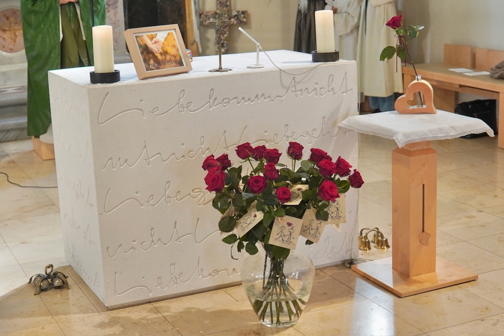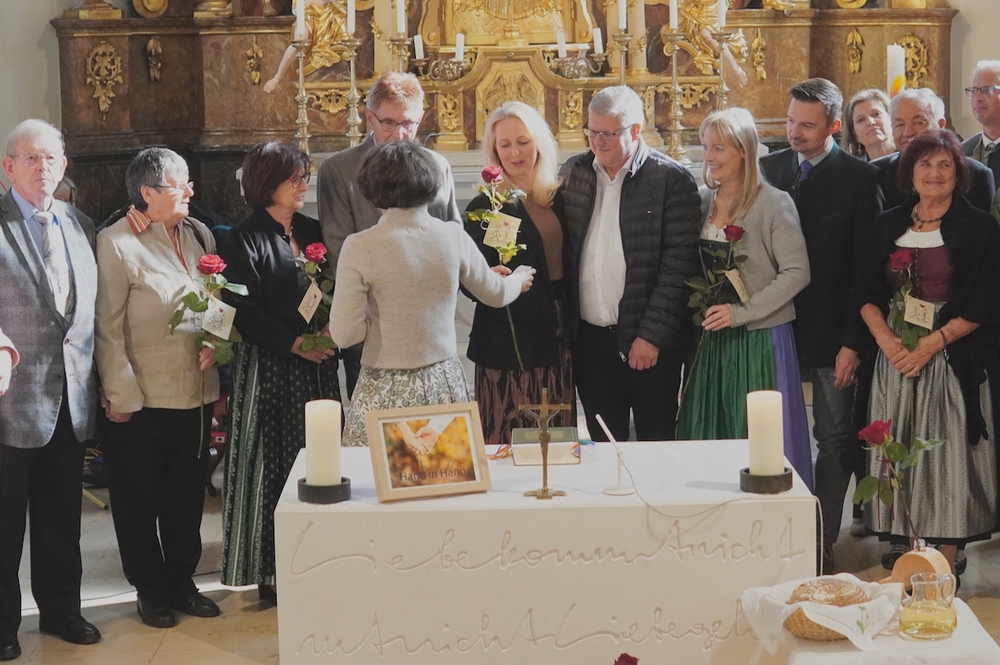 Viele Jahre oder Jahrzehnte als Ehepaar Hand in Hand zu gehen, ist ein Geschenk, wofür wir Gott danken dürfen. Seine Liebe, so Vikar Norbert Glaser in seiner Predigt, „wartet nicht in einem Präsidentenpalast, bis man zu ihr vordringt, sie macht sich von sich aus auf den Weg zu uns und bleibt“. Sie ist ein Universum, in dem wir uns in Gottes Hand geborgen wissen dürfen.