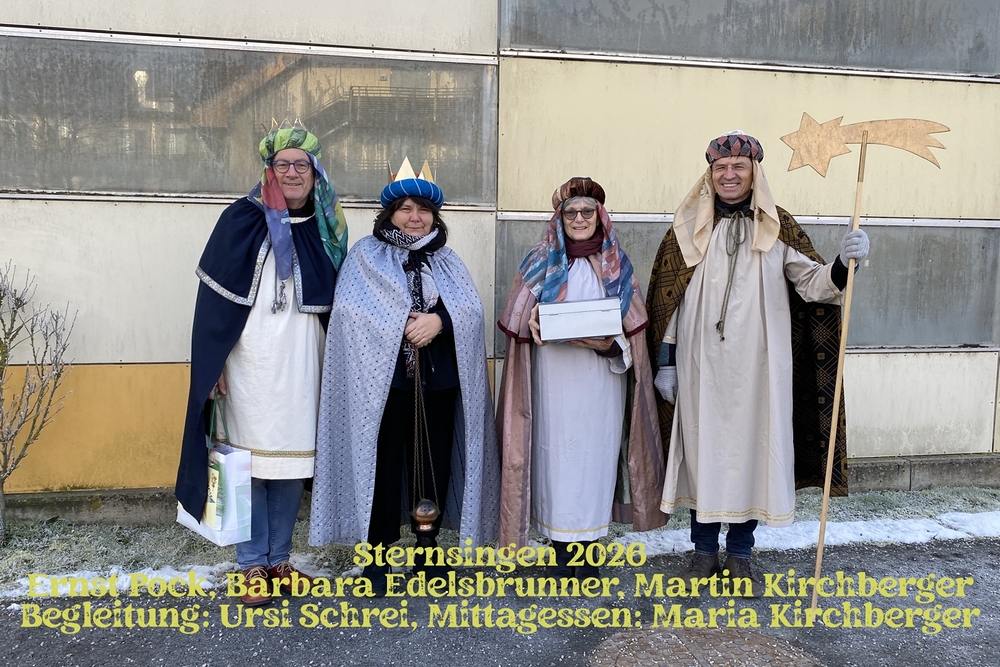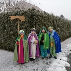 Neben den vielen helfenden Händen, die zum Gelingen der Aktion beigetragen haben, etwa beim Nähen der Gewänder, dem Vorbereiten des Materials, den Mamas, Papas, Omas, Opas, die ihre kleinen Könige zu den Proben gebracht und am Einsatztag beim Herrichten geholfen haben, den Köchinnen und Köchen, welche zum königlichen Mittags- oder Abendmahl geladen haben, dem Fototeam, Fahrdiensten und vielen weiteren mehr, sei vor allem den Kindern, Jugendlichen und Erwachsenen gedankt, die von Haus zu Haus gegangen und den Segen der Pfarrbevölkerung überbracht haben.
