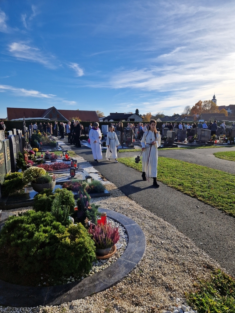 Zuvor wurde in schönen Texten und Gebeten, musikalisch umrahmt von der Marktmusik Unterpremstätten-Zettling, aller Verstorbenen gedacht. Auch wurden die Namen der im vergangenen Jahr heimgegangenen Personen nochmals laut ausgesprochen. Der aufsteigende Weihrauch verleiht den Verstorbenen besondere Würde und möge unsere Gebete zu Gott emportragen.
