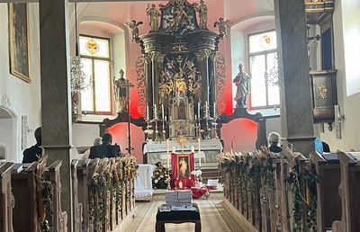 Pfarre Landl Segnung der renovierten Kirche am Kalvarienberg mit Abt Mag. Gerhard Hafner OSB am Sonntag, 10. September 2023, 14.00 Uhr Fotos von der Einweihung mehr: Segnung der renovierten Kirche am Kalvarienberg
